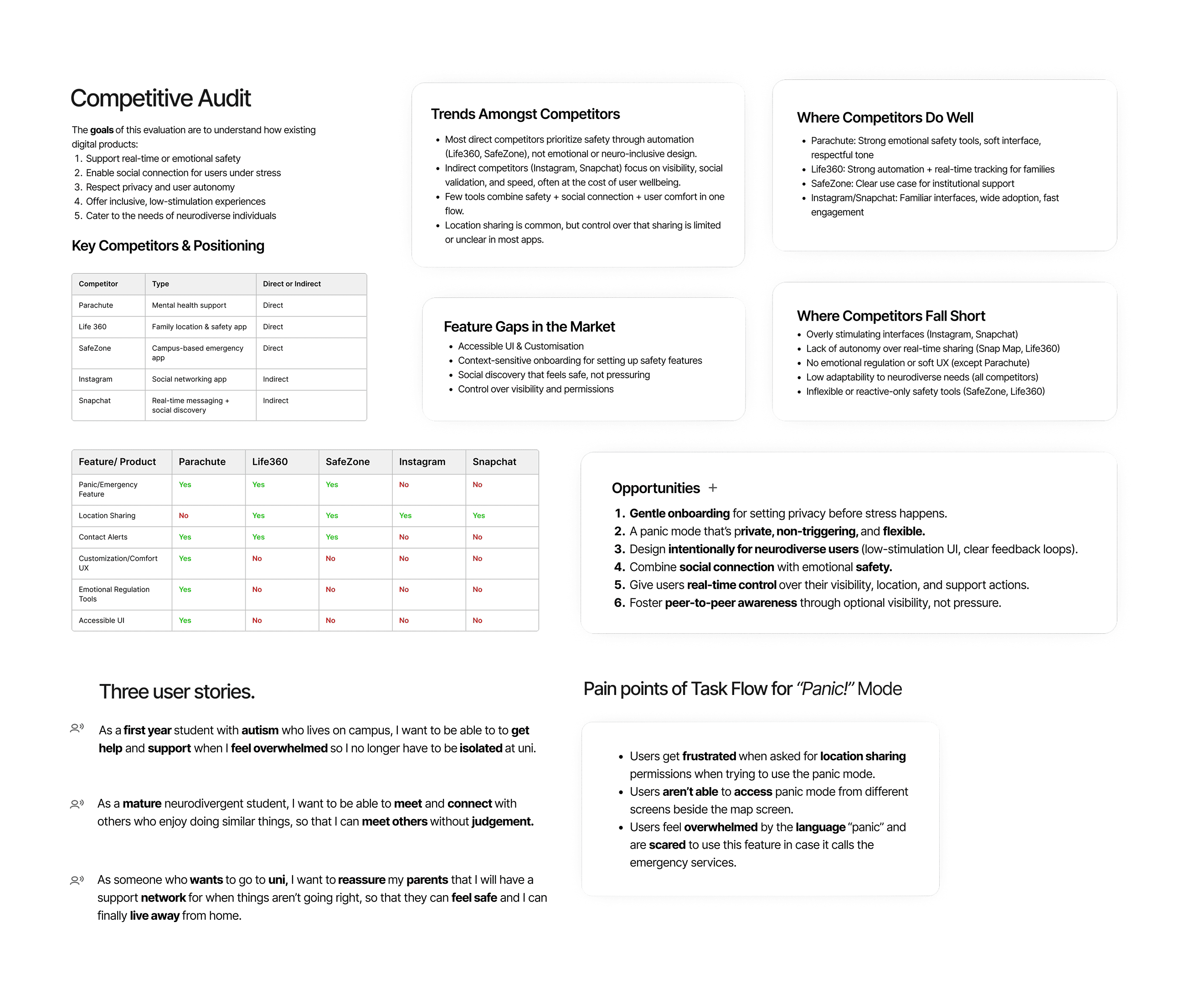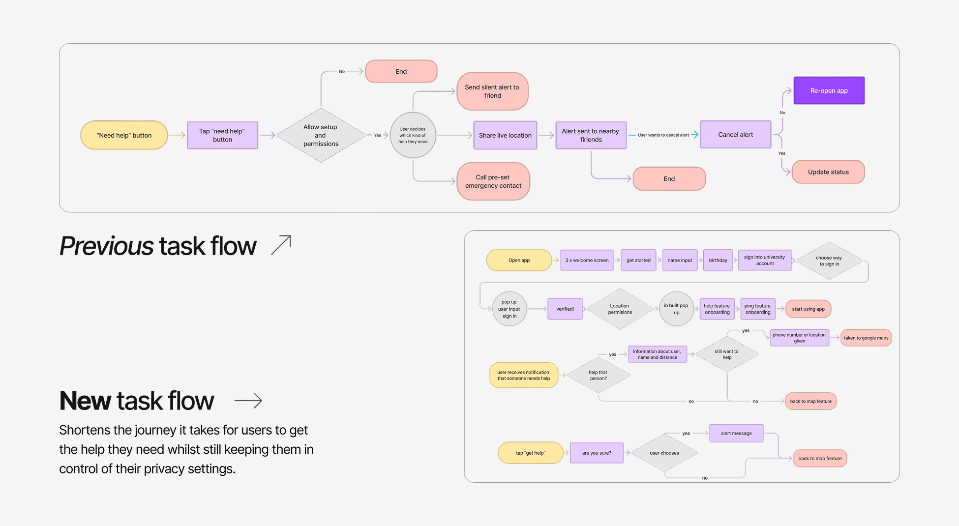 When I tested the original design with a group of 5 users, one of the biggest pain points on the existing journey was the functionality of the “need help” panic button.