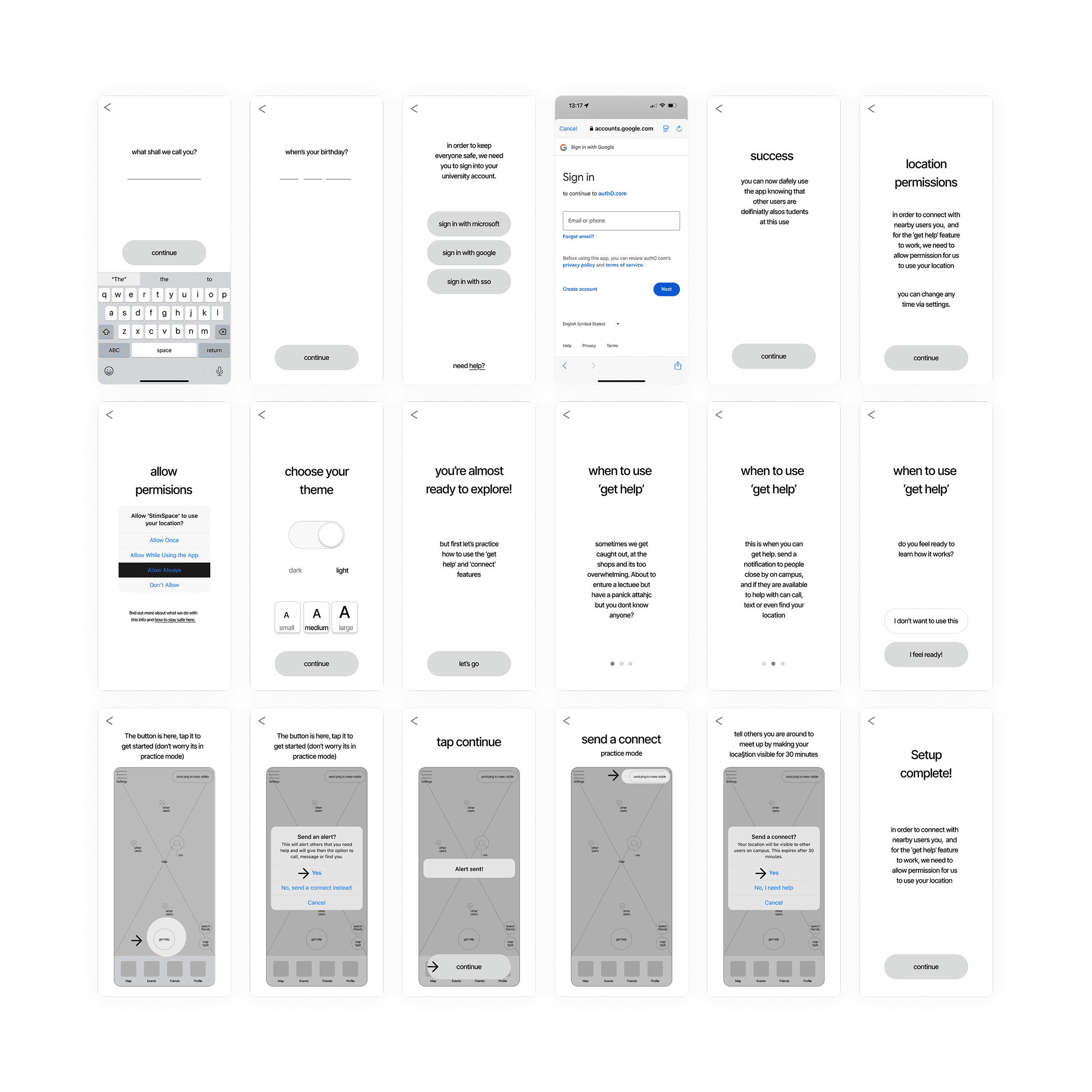 This project focuses on redesigning the onboarding experience for StimSpace, a social app for neurodivergent university students. The aim was to create a calm, intuitive introduction that encourages safe, low-pressure connection through messaging and community features.